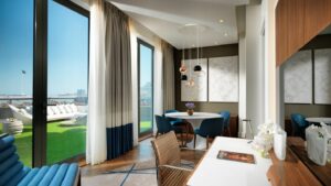Нет ничего романтичнее, чем вид на море. Шагните на балкон своего номера, и вашему взору откроются Площадь флага, Бакинская бухта и Порт Баку. Голубая вода Каспия будет мерцать перед вами как звёздное небо, создавая ощущение спокойствия и волшебства. Есть также номера с видом на город и горы.