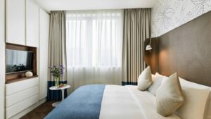 Почувствуйте себя как дома в одном из 150 номеров с кондиционером и другими удобствами, в числе которых — док-станция для iPod и мини-бар. Чтобы вам не пришлось скучать, в номерах установлены LED-телевизоры (спутниковое ТВ), а бесплатный беспроводной интернет позволит всегда оставаться на связи. В ванных комнатах вы найдете компактную душевую кабину, банную косметику, дизайнерские туалетные принадлежности и биде. В комнатах есть письменный стол, телефон, с которого можно осуществлять бесплатные местные звонки, а также сейфы, в которые поместится ваш ноутбук. Отель предоставляет услуги консьержа.
