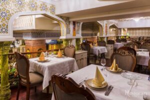 Если вы хотите совершить небольшое гастрономическое путешествие в азербайджанскую кухню, то ресторан «Азербайджан» подойдёт для этих целей просто идеально. Заведение с восточным колоритом расположено в Хорошёво-Мнёвниках – одном из самых экологически благоприятных районов Москвы. Здесь вы прекрасно проведёте время. Уже на входе вы окунётесь в сказочную атмосферу загадочного Востока. Аутентичный интерьер украшен отделкой из натуральных материалов, лепниной. Кованые изделия, мозаика на стенах, выполненная в виде этнических узоров, роскошные диваны с «золотой» обивкой, резные спинки стульев – всё это создаёт неповторимый колорит.