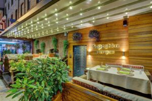 Если вы решили заглянуть в ресторан в часы обеда, то вас будет ждать приятный сюрприз – скидка на всё меню. По выходным здесь подают сытные завтраки для компаний из 2-3 человек, поэтому можно дать себе возможность расслабиться в утренние часы субботы или воскресенья и отправиться всей семьёй в ресторан. Официант предложит 5 гастрономических сетов на выбор – «Баку», «Гянджа», «Губа», «Лянкярань», «Нахчиван». Попробовав каждый, вы совершите путешествие по Азербайджану и полноценно познакомитесь с особенностями национальной кухни.